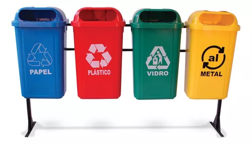 • 04 Unidades de Lixeiras de 50 Litros (em 4 cores diferentes) com suporte metálico.